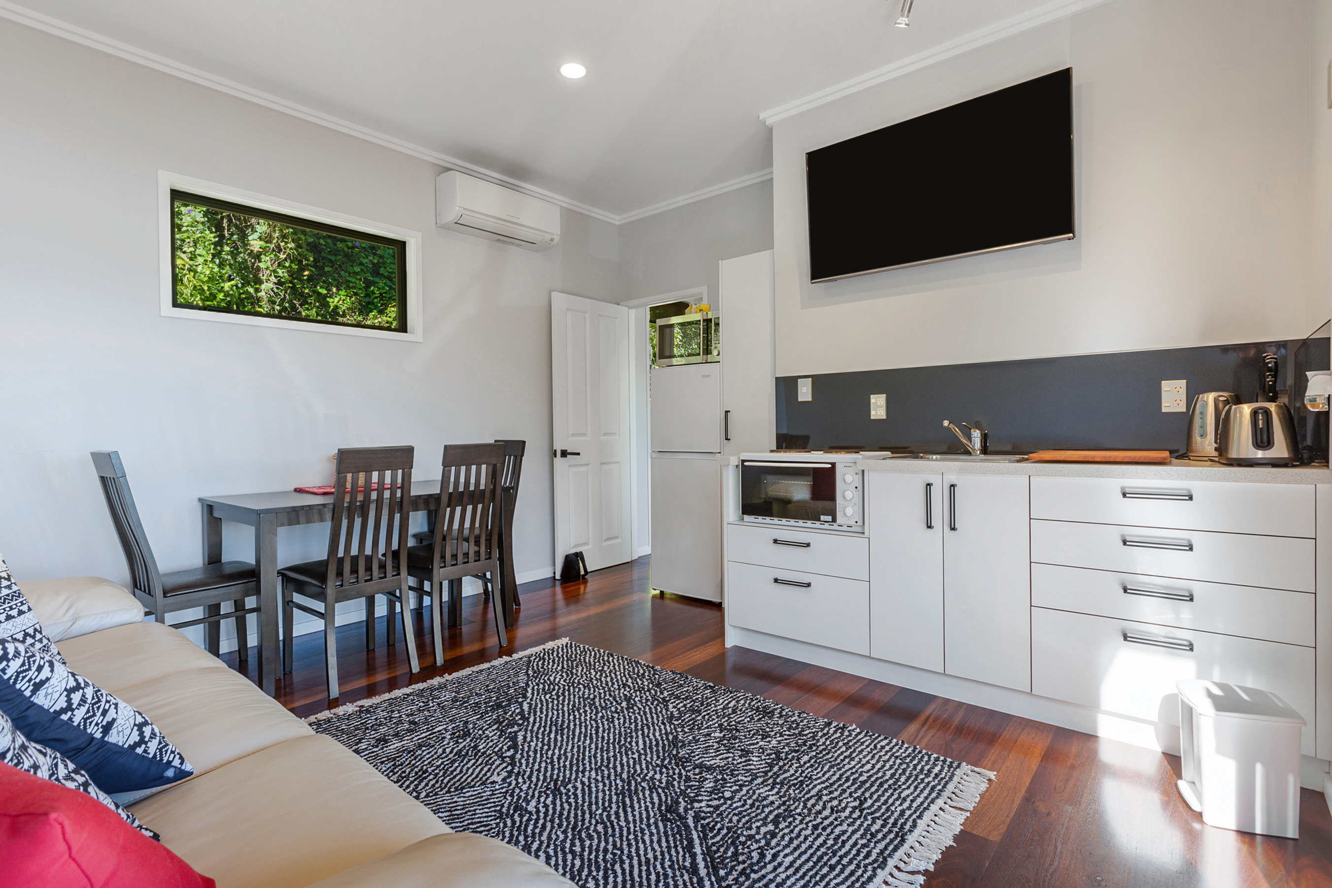 Nestled between the main house and the 2-bedroom self-contained unit is the charming conservatory, affectionately known as the "beer garden." Serving as a link between the dwellings, it adds an elegant touch. The executive unit offers an open plan living area, two bedrooms, and a well-appointed bathroom laundry area making it a perfect retreat for family and friends.