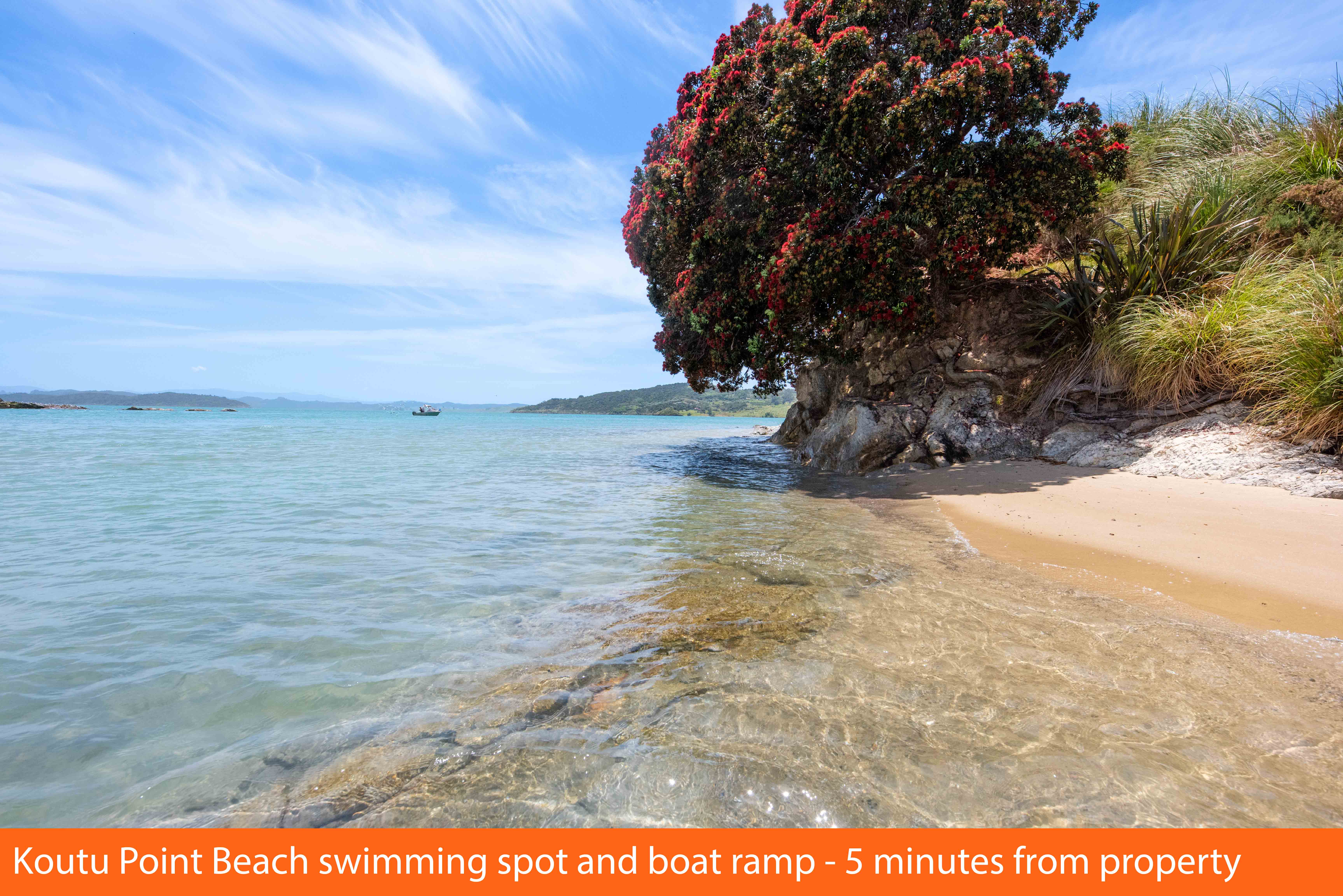 Enjoy multiple nearby access points to Koutu Beach for swimming, fishing, and boating, with additional boat launching access at the end of the road. All of this is set within the quiet Koutu community, just a 10-minute drive to Opononi and Omapere and their local amenities.