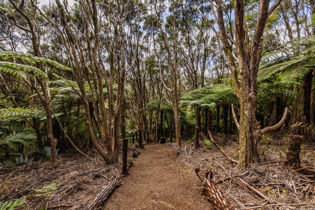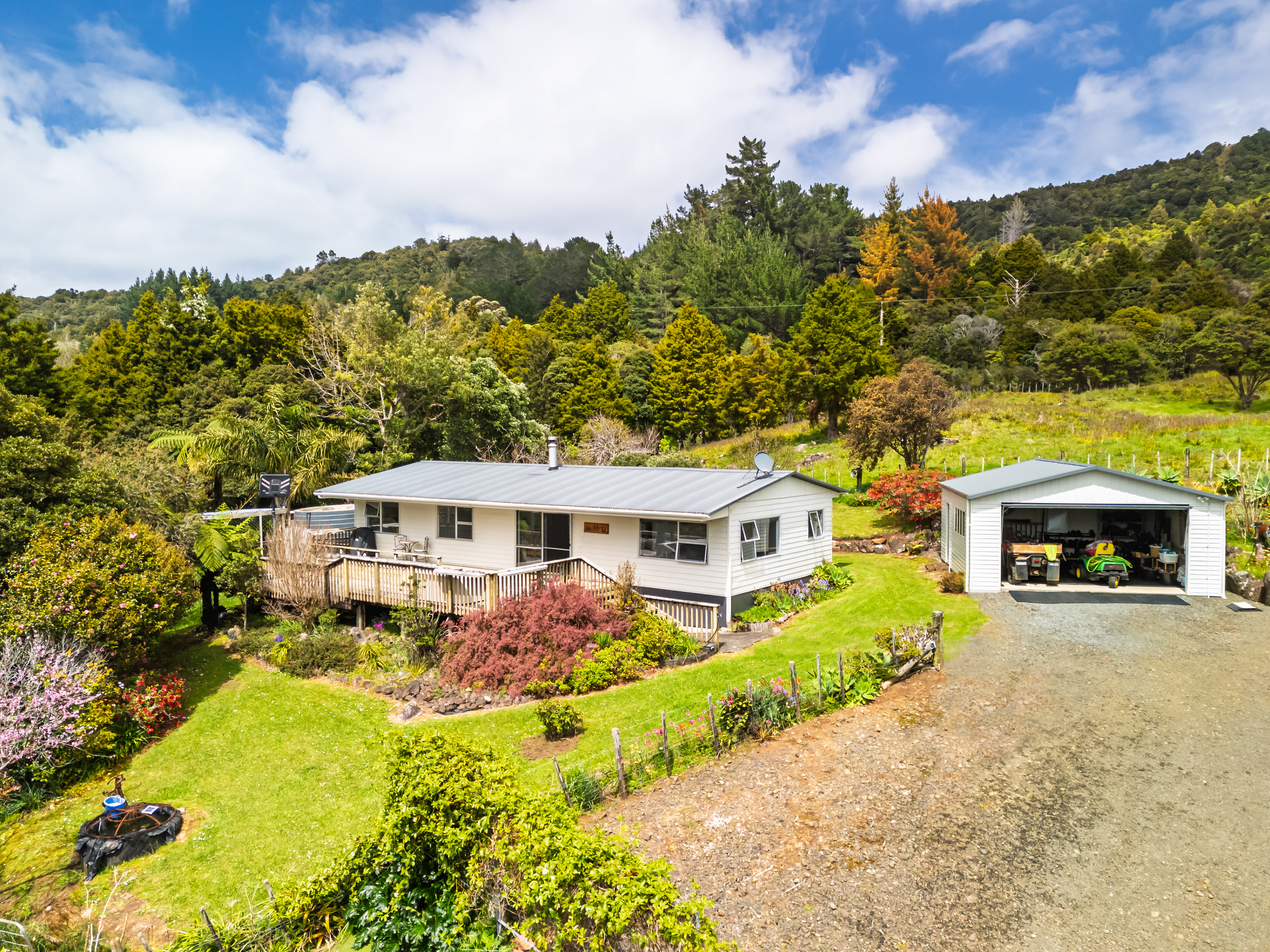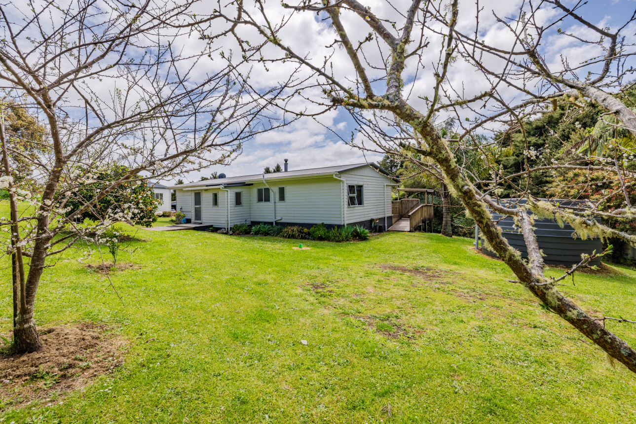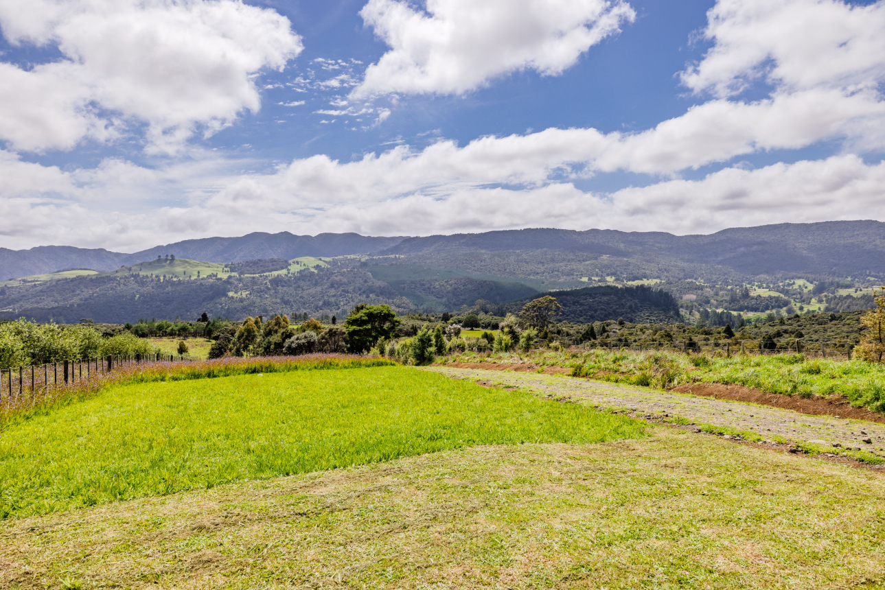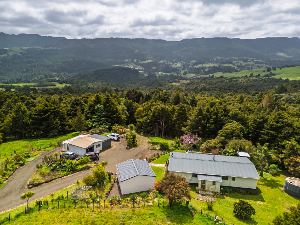 The land is both beautiful and productive, with fertile volcanic soil, grazing paddocks, and an orchard bursting with fruit — apples, pears, citrus, figs, plums, nectarines, and more. A garden, woodshed, and shaded walk-in chicken coop complete the self-sufficient lifestyle.