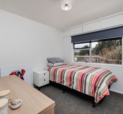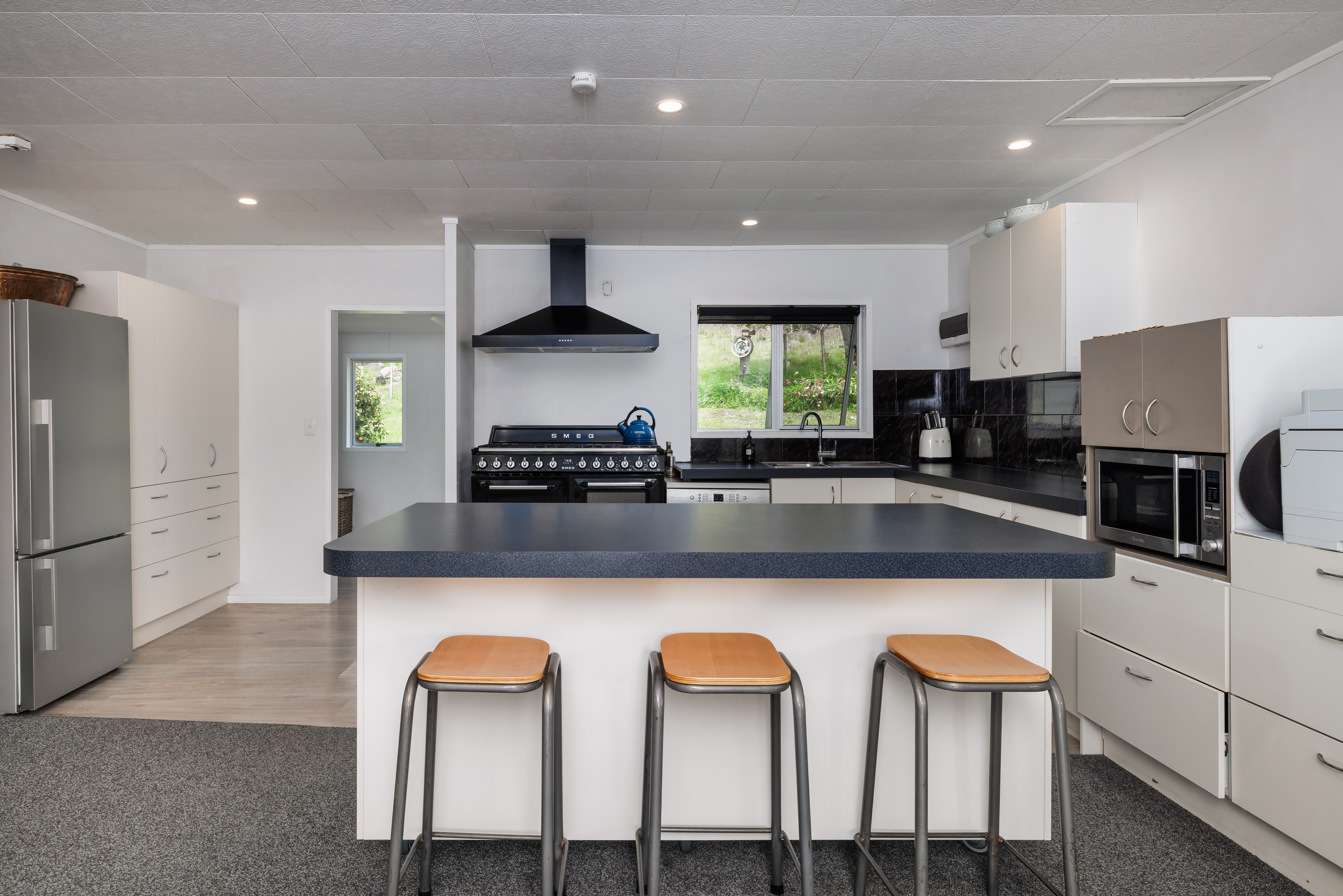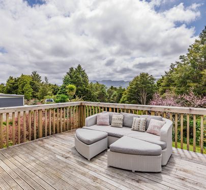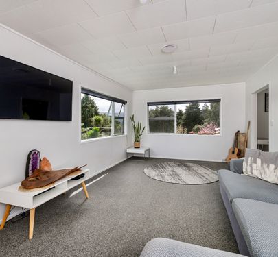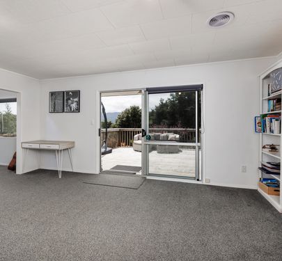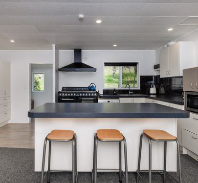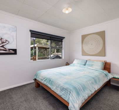 The north-facing three-bedroom home has been thoughtfully refreshed for comfort and ease. The modern kitchen features generous bench space, ample cabinetry, and a mobile island. Light flows through open living and dining areas leading to a large, partially covered timber deck — perfect for relaxing or entertaining while taking in the peaceful rural outlook.