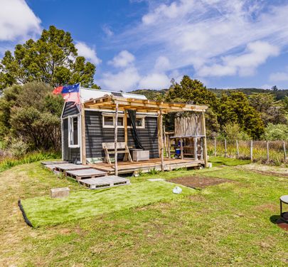 Follow the newly formed gravel driveway down to the charming off-grid cabin — a quiet spot to rest, reflect, or host guests — or continue to the level paddock with a compostable toilet and rustic shower shed, ideal for camping and summer gatherings under the stars.