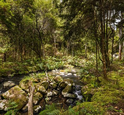 Set above the Waimamaku River and just 4 km from the mighty Tāne Mahuta Kauri, this one-of-a-kind property offers privacy, tranquillity, and a rare connection to nature. Wander through your own native forest beneath kauri, rimu, tōtara, and kahikatea; follow trails past streams, rock formations, and waterfalls; or cool off in a natural swimming hole while birdsong fills the air.