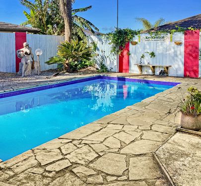 Entertaining is easy with a covered games area featuring a pool table and a second, expansive all-weather zone incorporating a full outdoor kitchen, dining, and barbecue area. This connects directly to the inground swimming pool — ideal for guests and group stays.