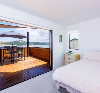 The open plan kitchen, dining and living area flows effortlessly onto a generous front deck, creating the perfect space for entertaining family and friends while enjoying the ever-changing harbour scenery. The master bedroom also enjoys double bifold so you can wake up to the view. The separate laundry, also offers additional storage and potential workshop space.