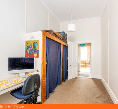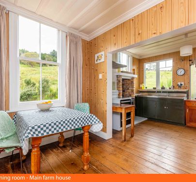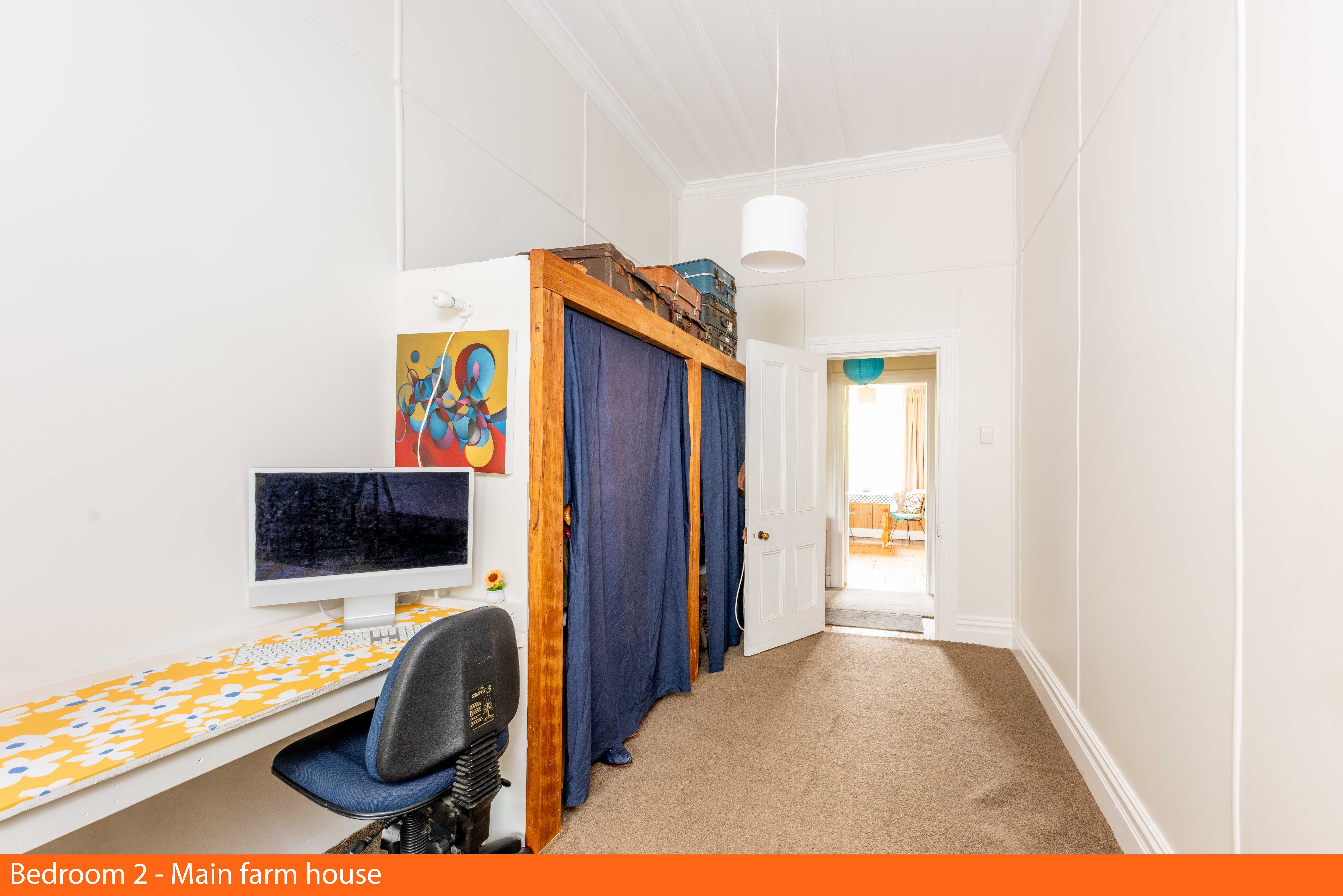 The main farmhouse offers three bedrooms and one bathroom, positioned to enjoy a peaceful and private outlook across the land.