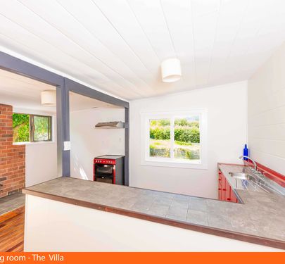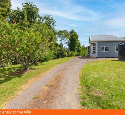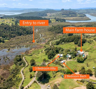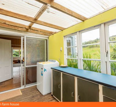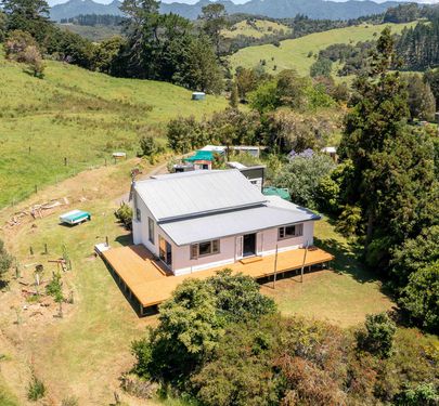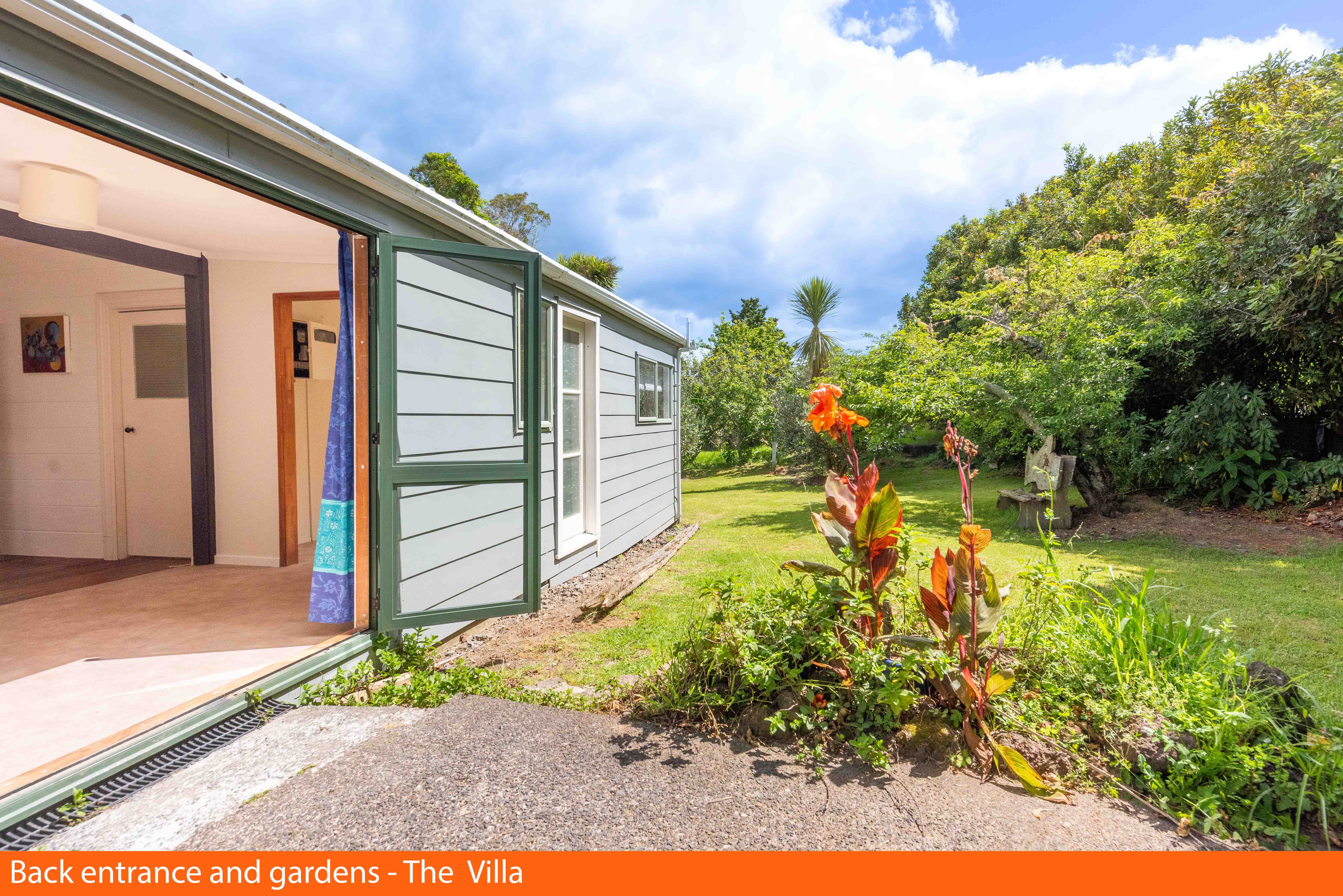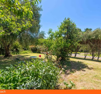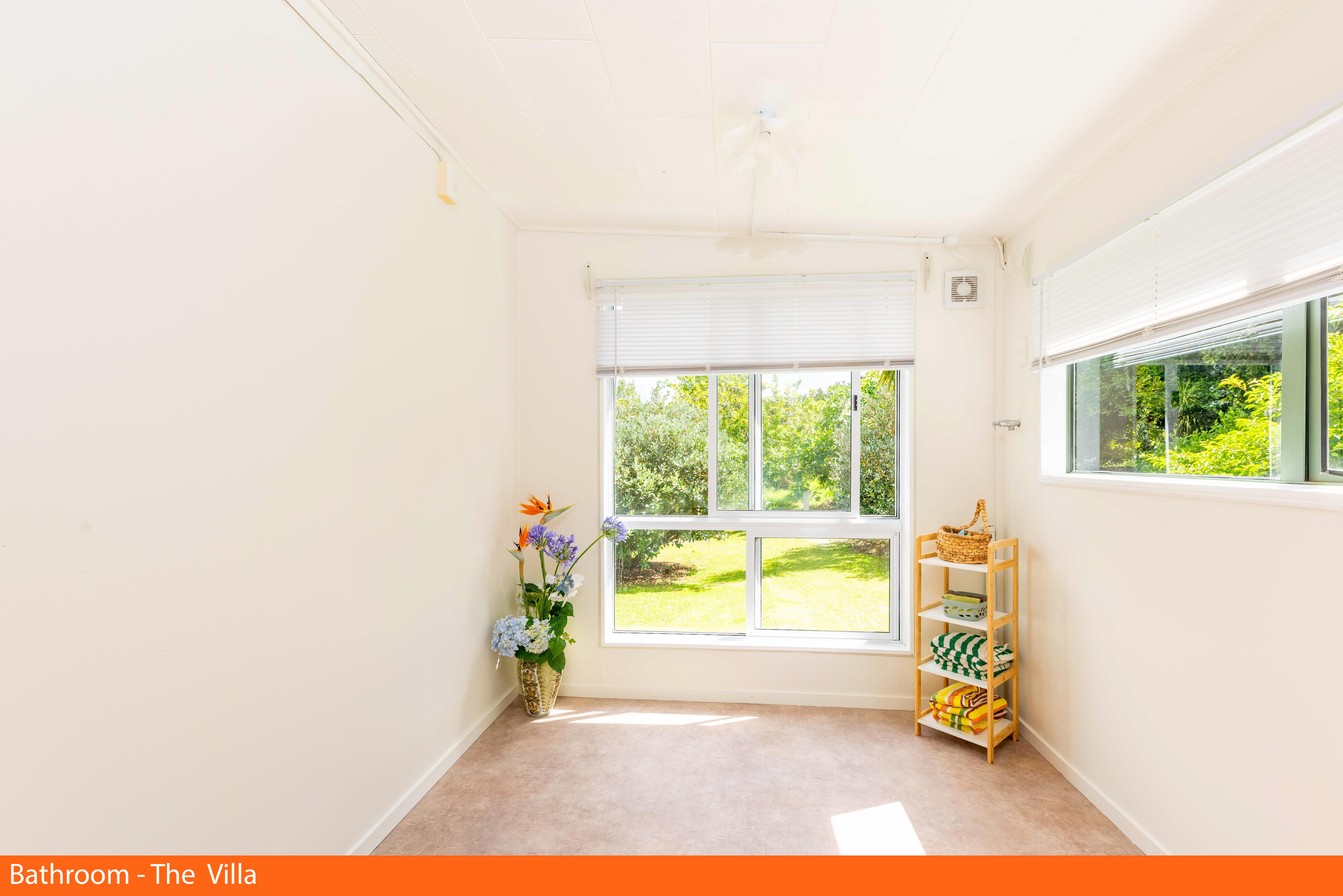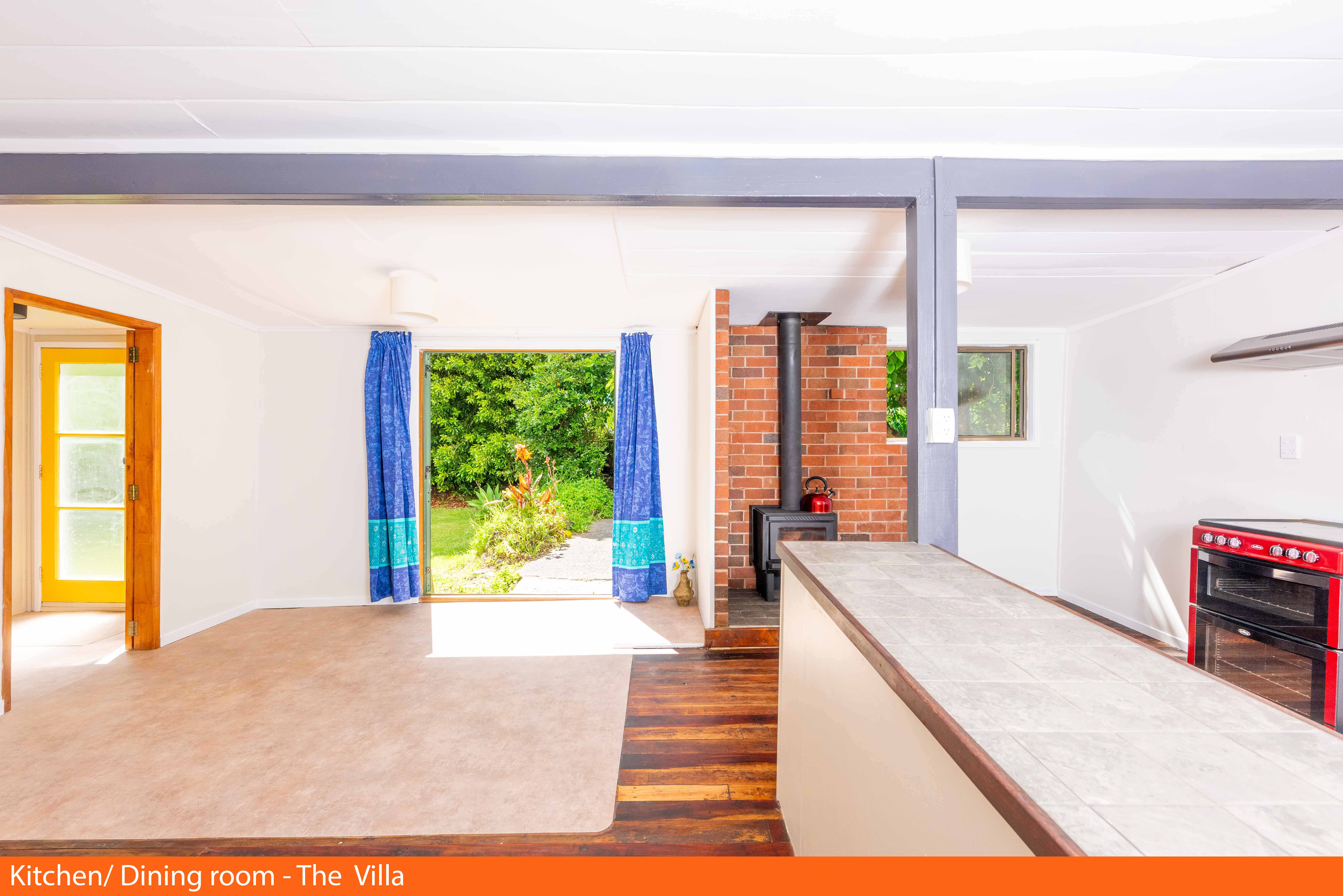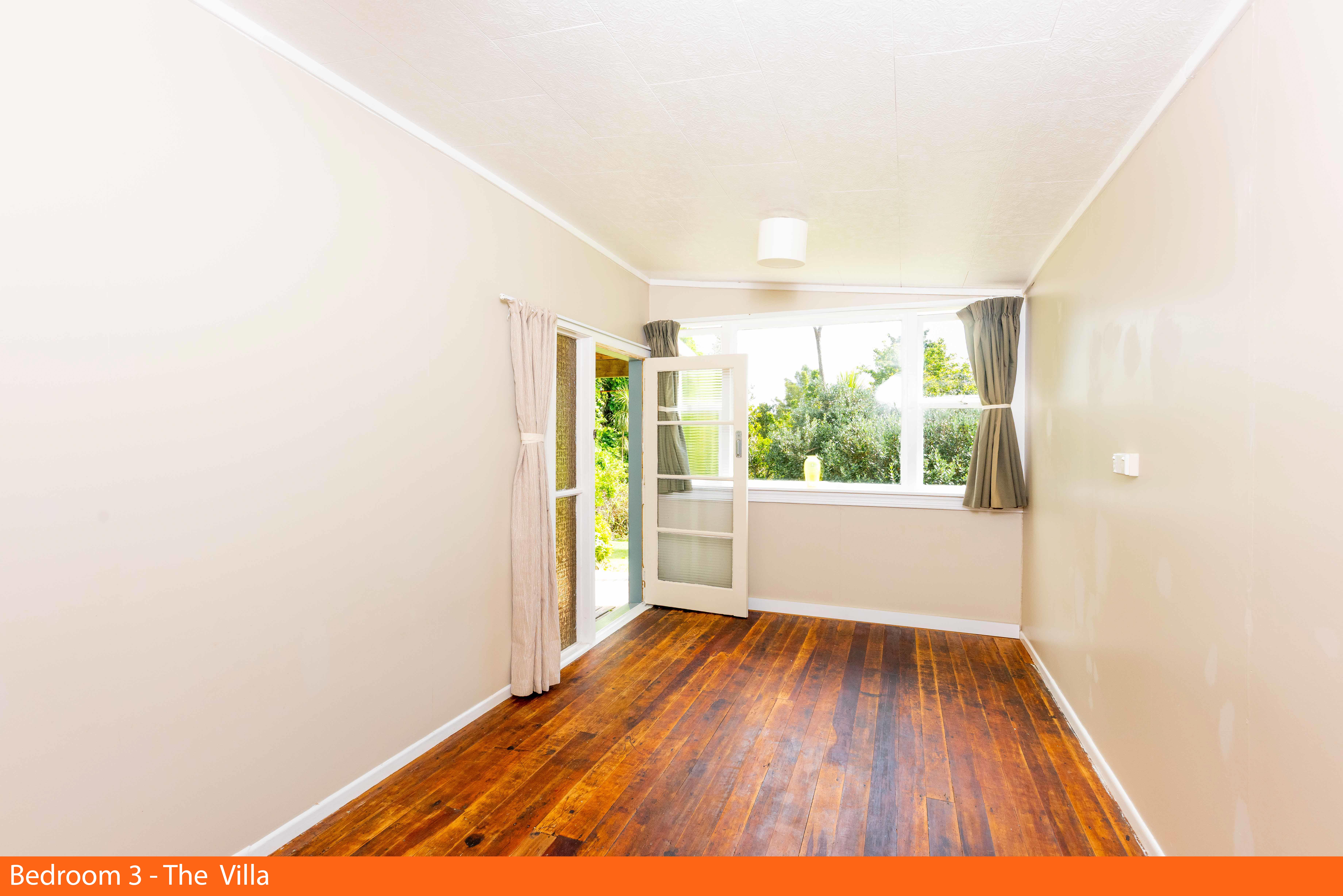 The bach provides a two-bedroom, one-bathroom option, ideal for guests or supplementary accommodation. A total of 129,000 litres of rainwater storage capacity is available.