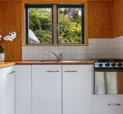 Set on over an acre (5,115m²) of north-facing, established native bush, the property enjoys excellent sun, natural shelter, and a peaceful outlook with glimpses toward the turquoise waters beyond. It feels wonderfully secluded, yet places you right at the heart of this iconic coastal location.
