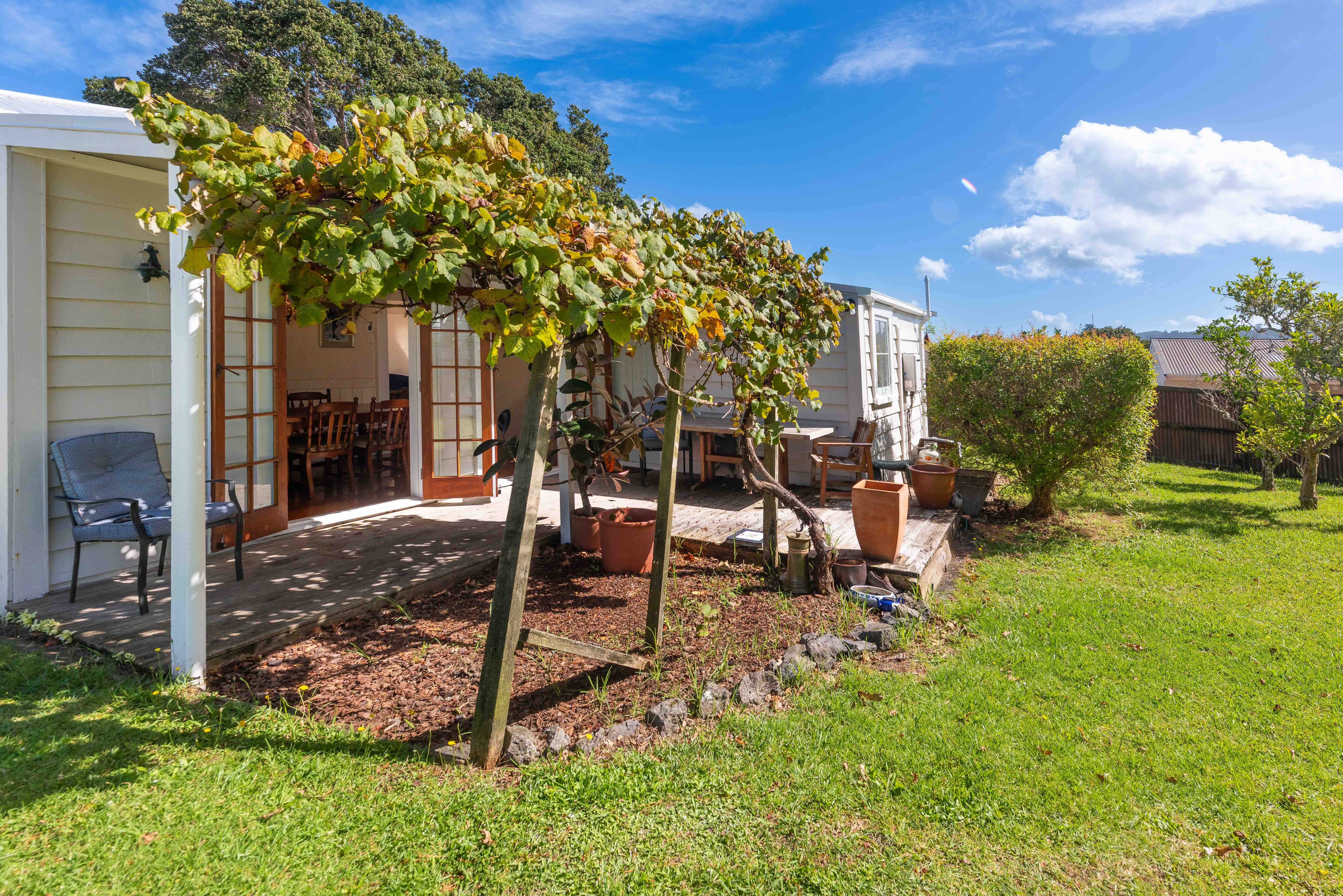 Set on a sizeable 1,012m² section, the grounds feature ample lawn space with established fruit trees, a garage, and a lean-to shed. Plenty of space for parking for family and friends.