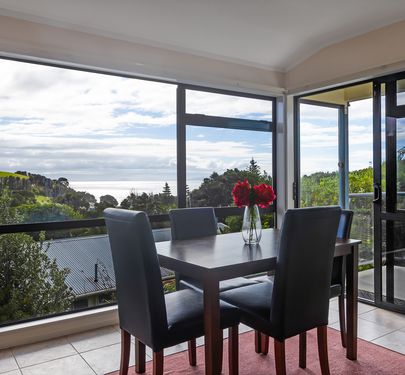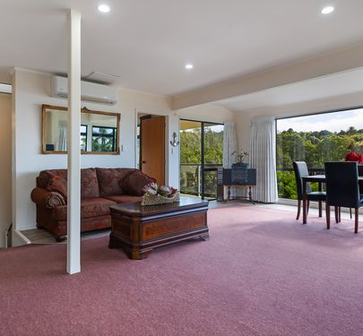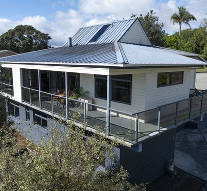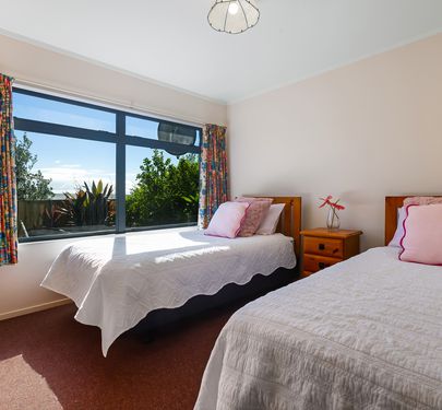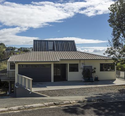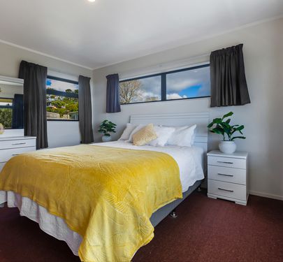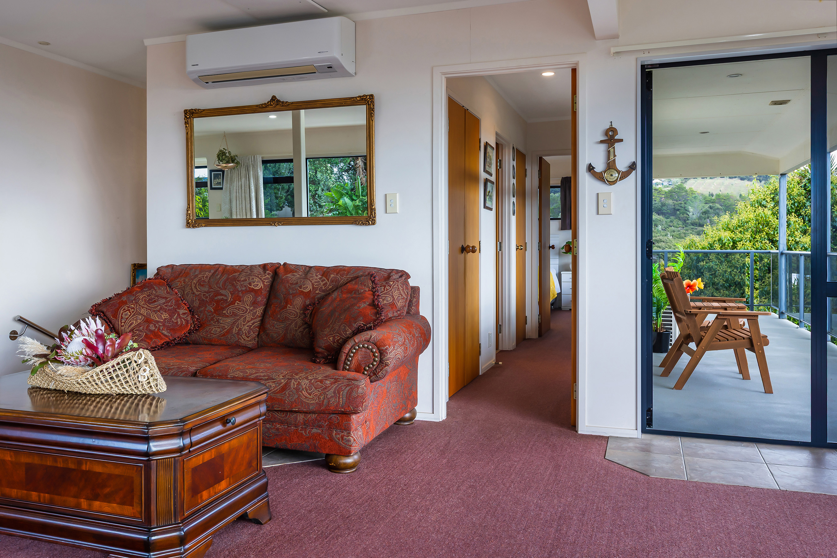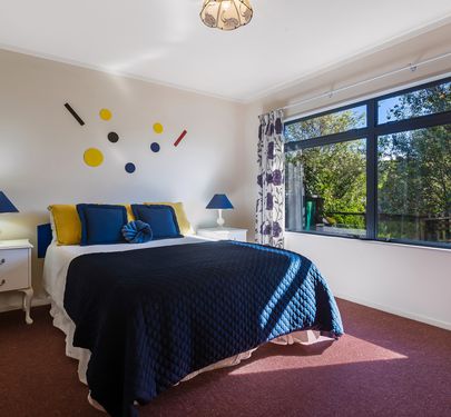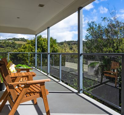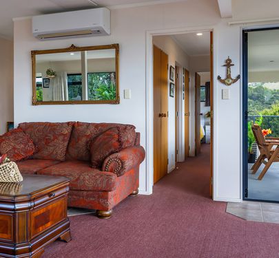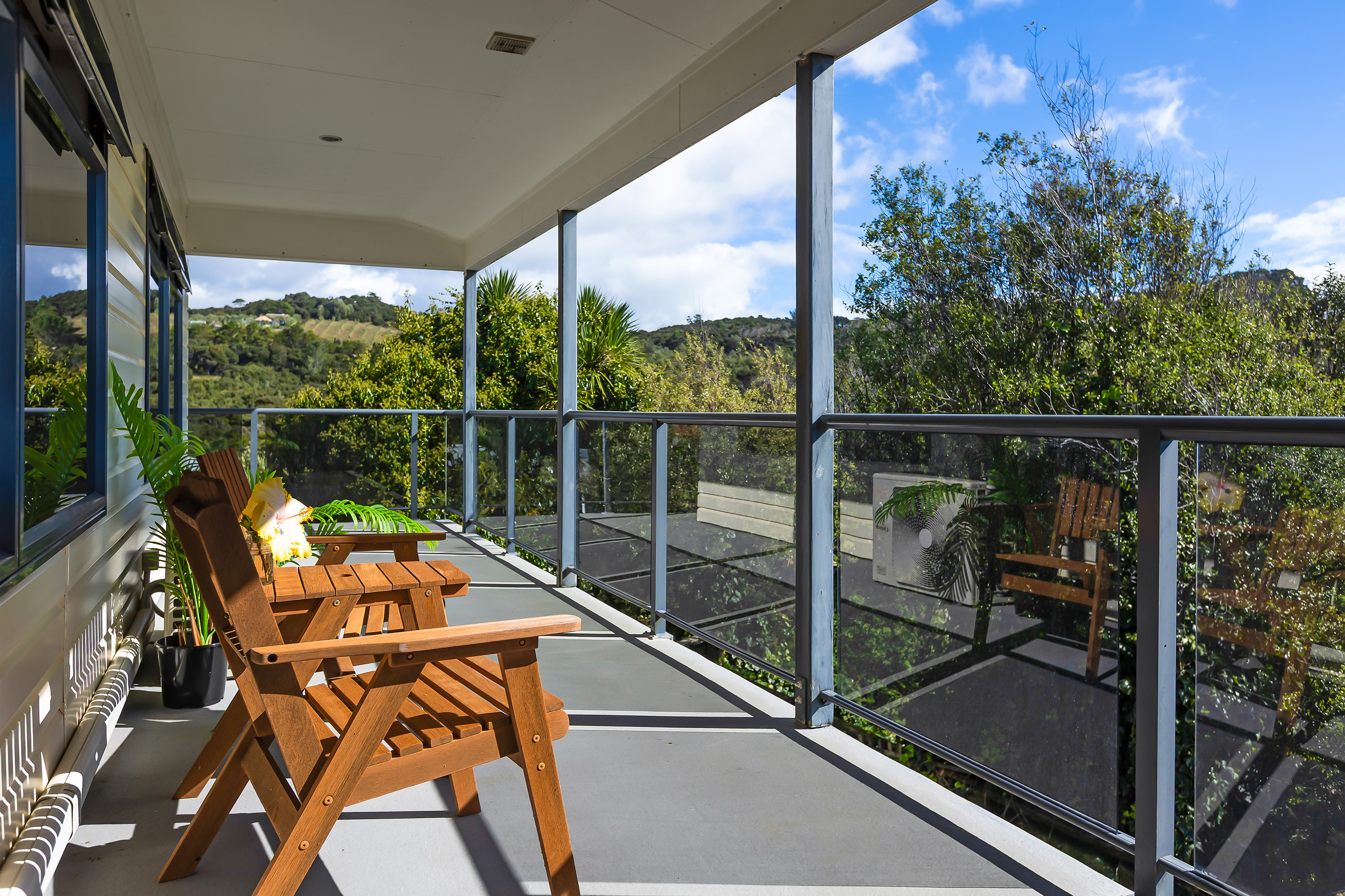 Set privately in a quiet cul de sac, the home enjoys views across Cable Bay to Karikari Peninsula, sheltered within a peaceful backdrop of native bush. Sunlight pours across the wrap around deck from morning through to sunset, creating an effortless indoor–outdoor flow and extending your living room footprint for entertaining or simply unwinding in your own coastal sanctuary.